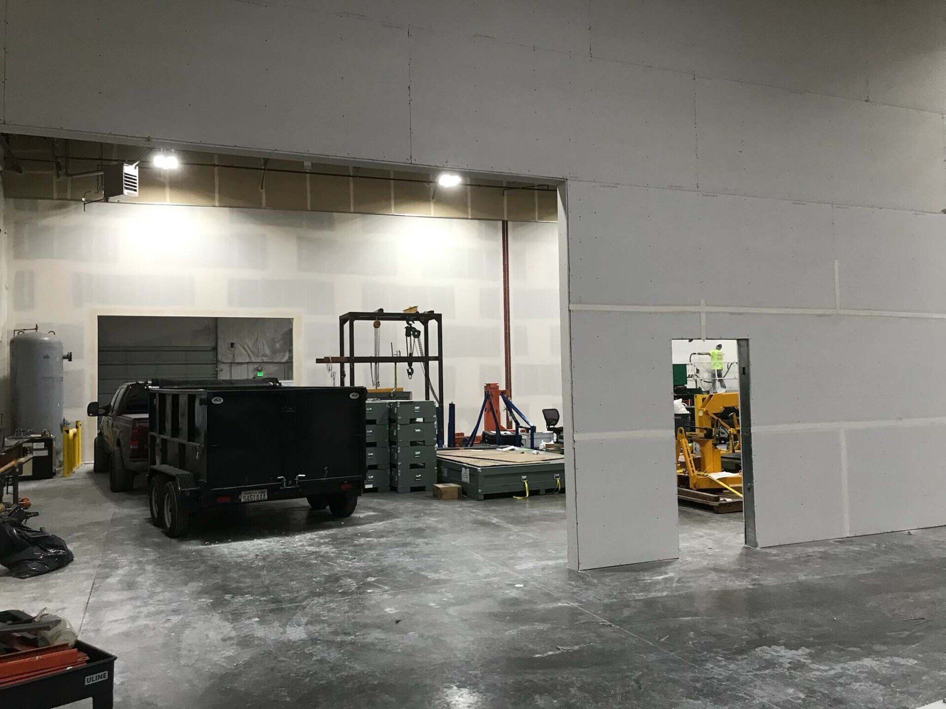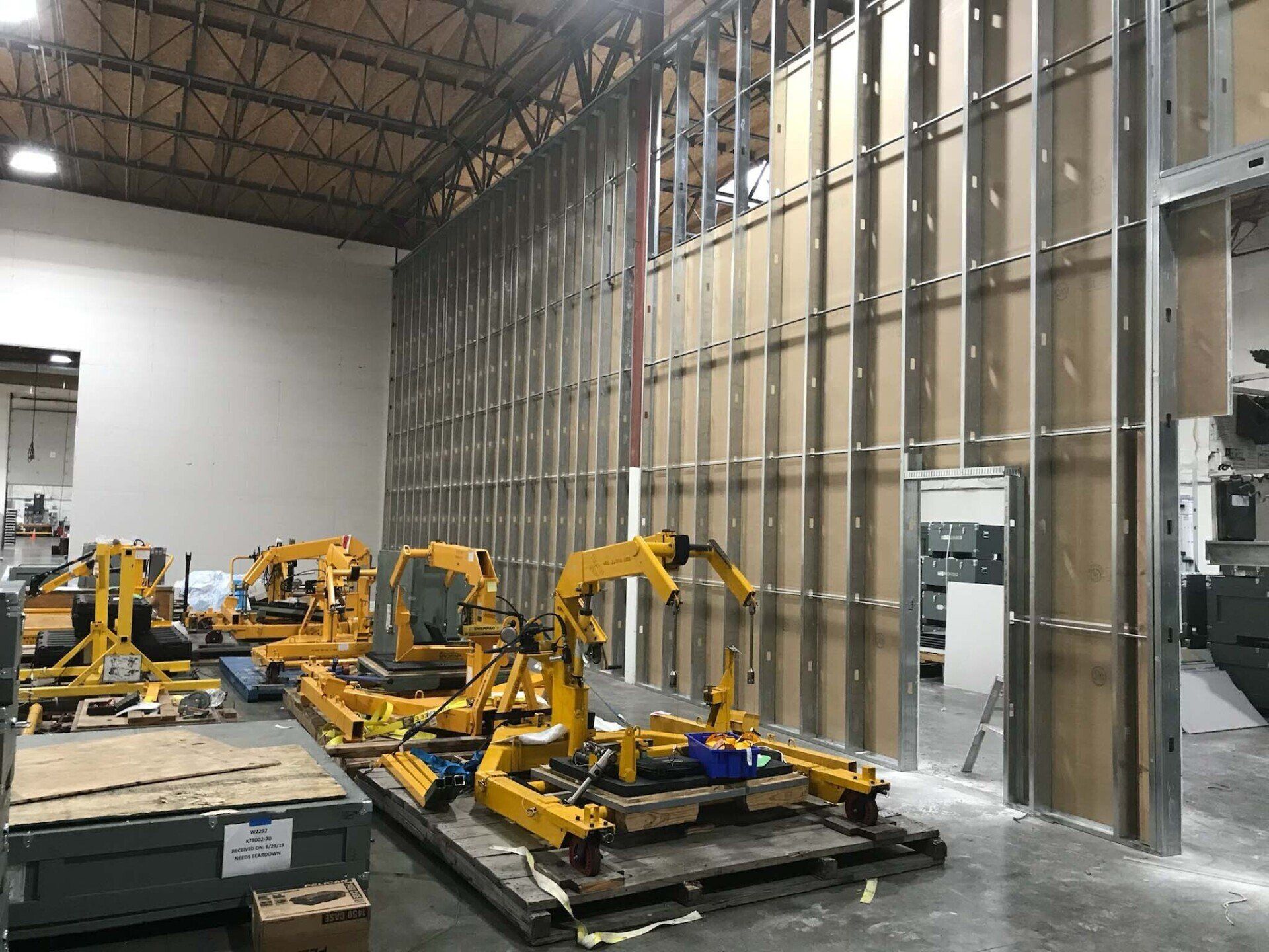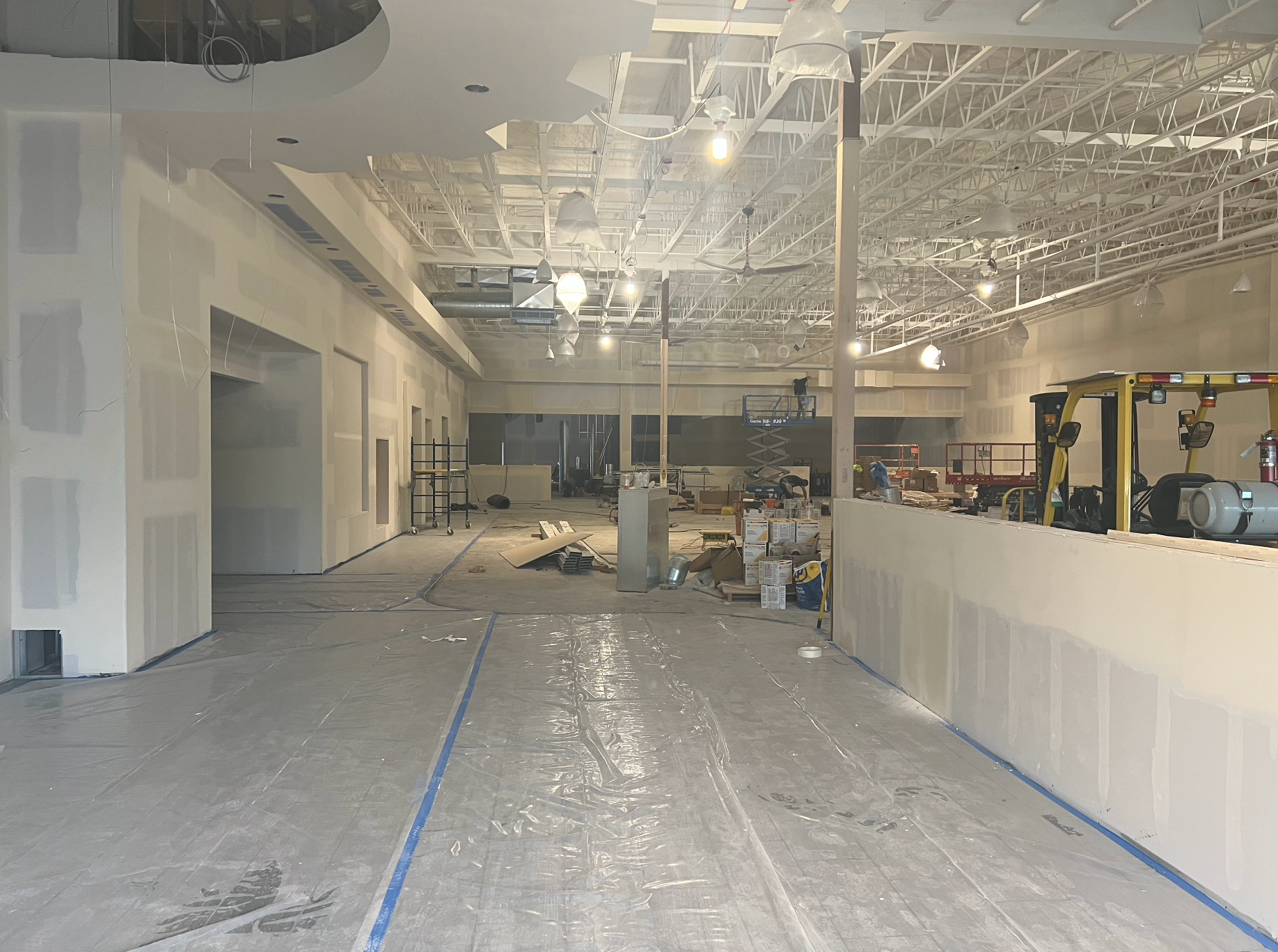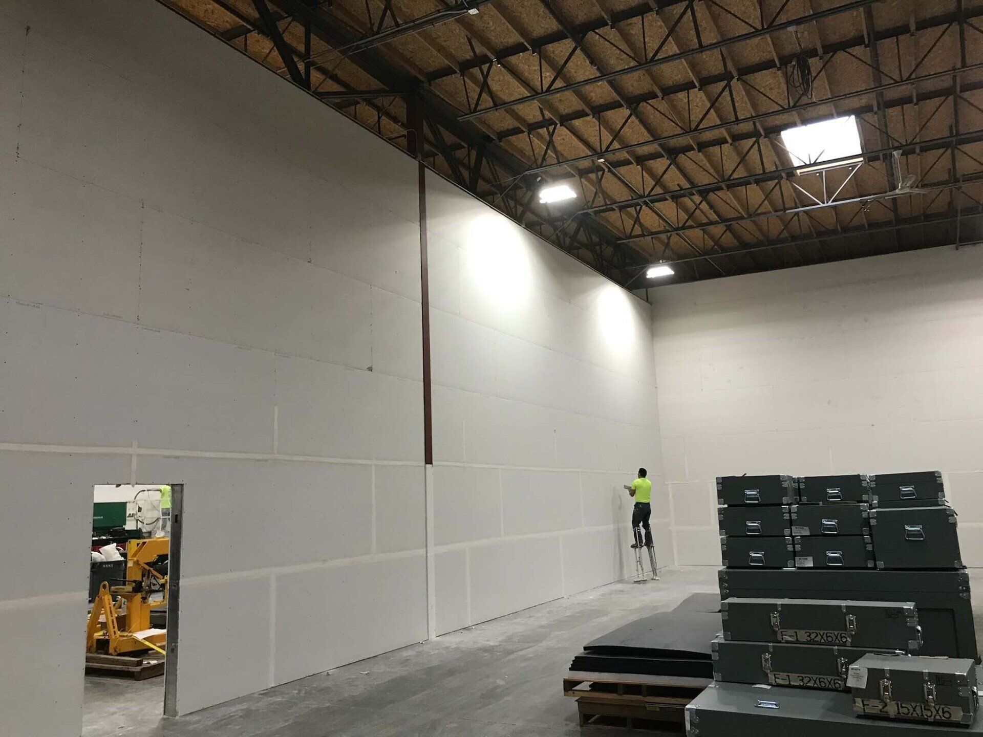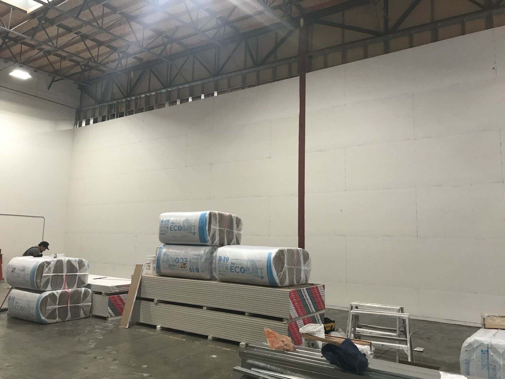 Drywall installed and finished, acoustic ceilings and paint