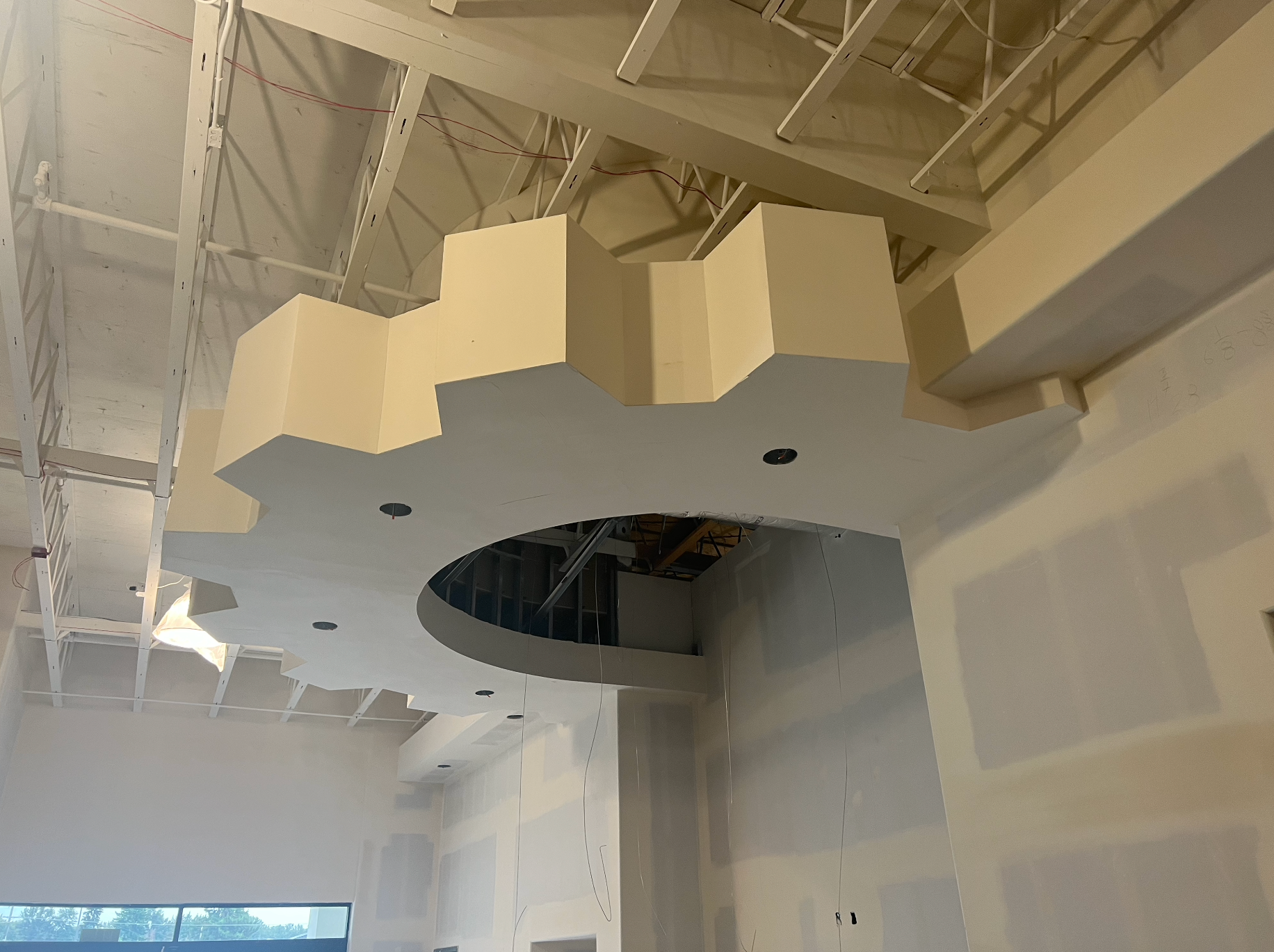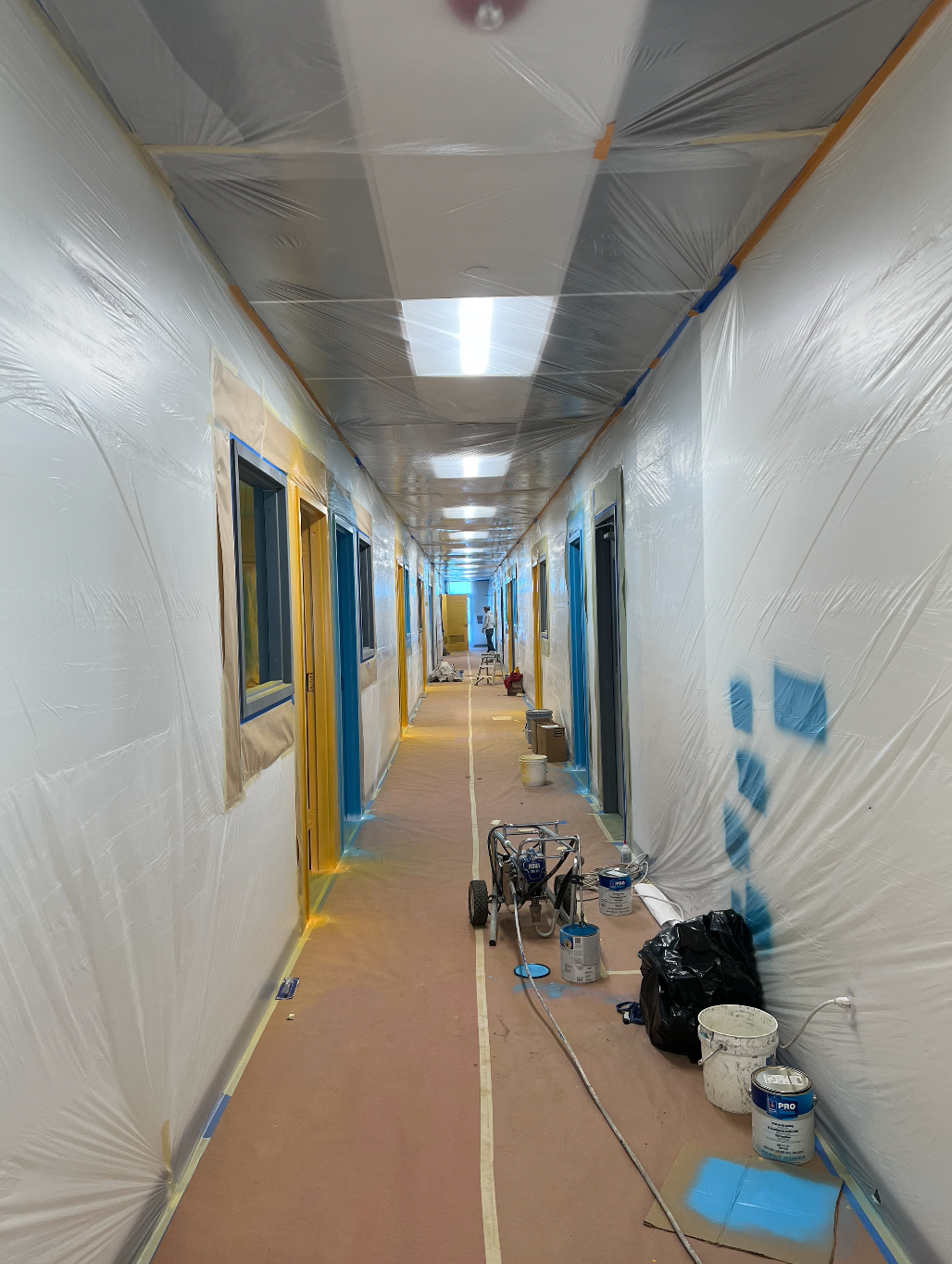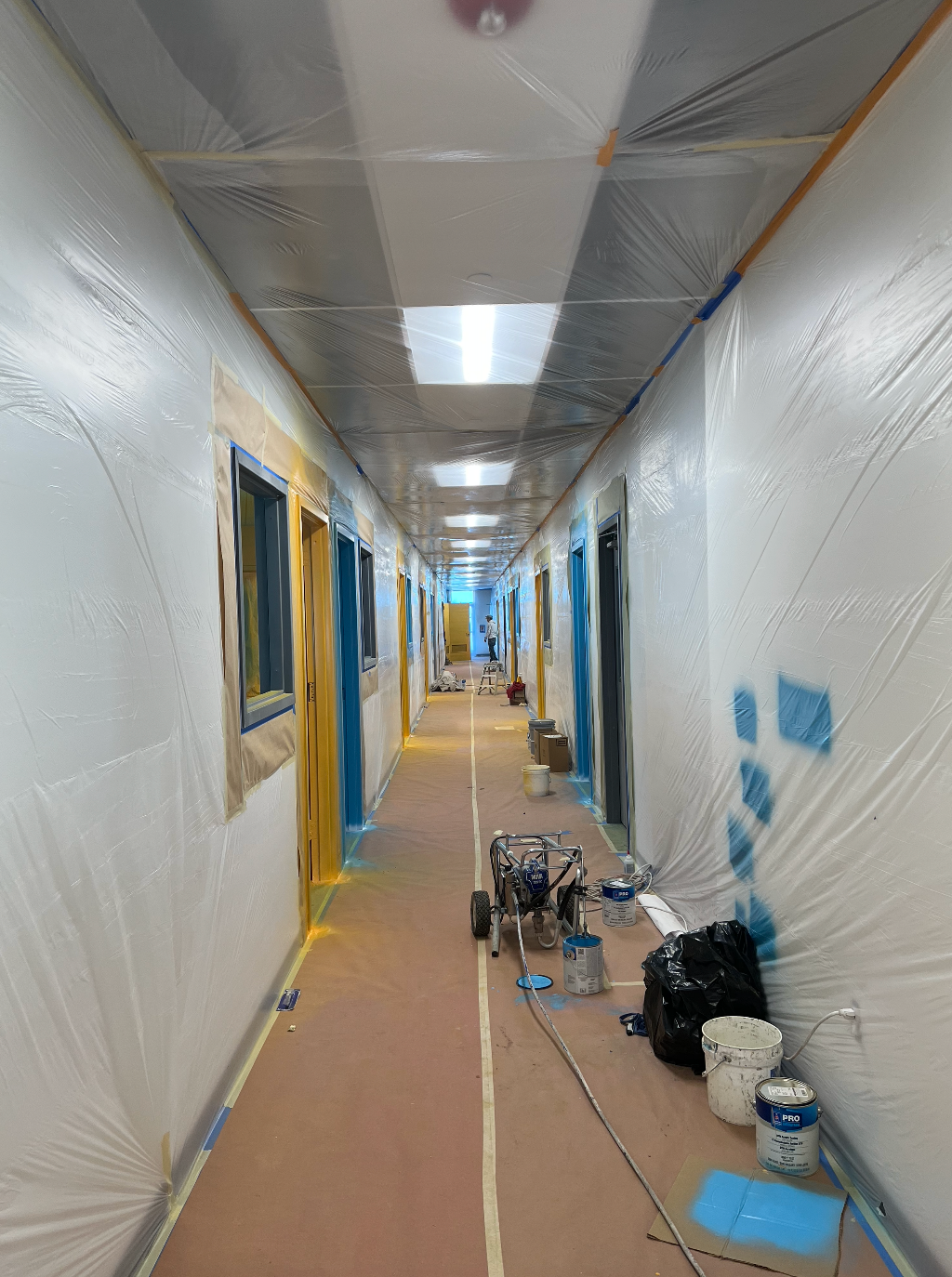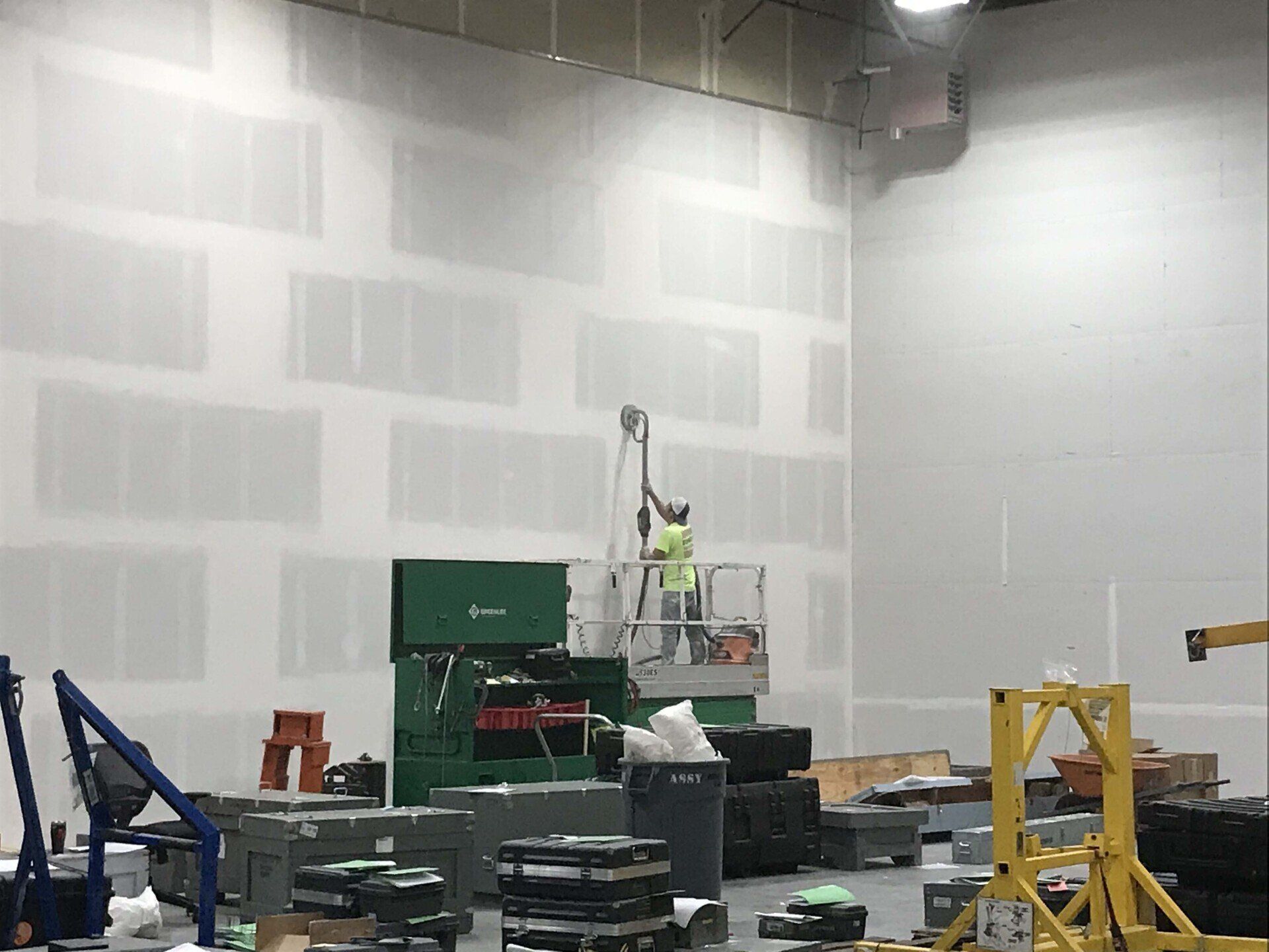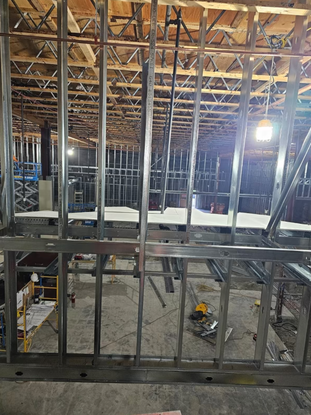 Drywall installed and finished, acoustic ceilings and paint