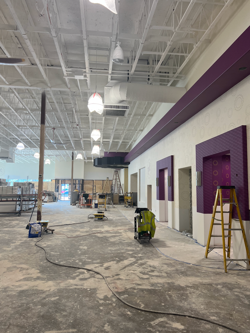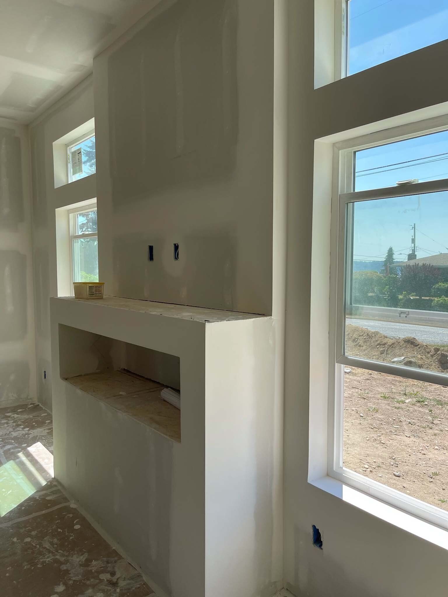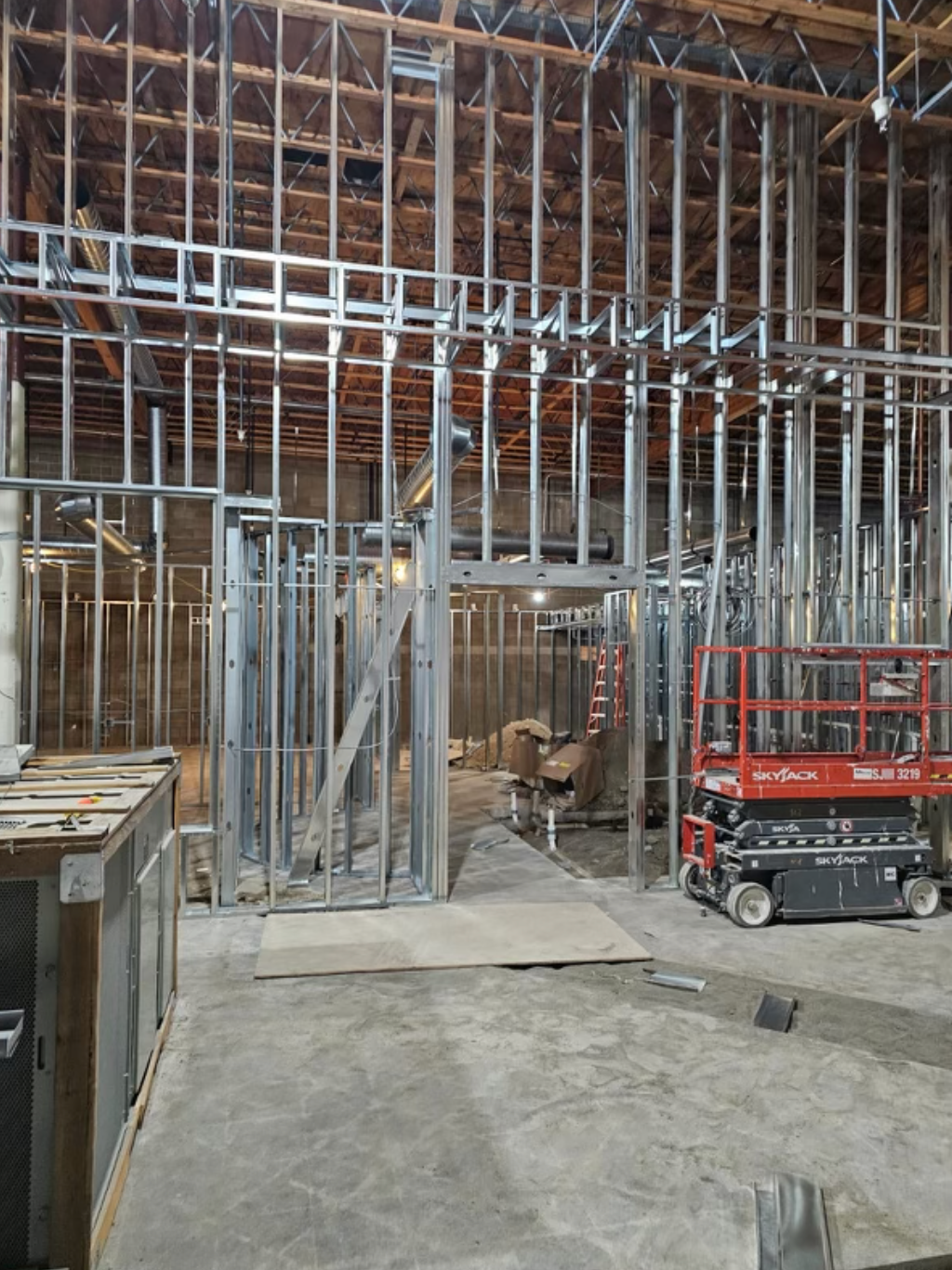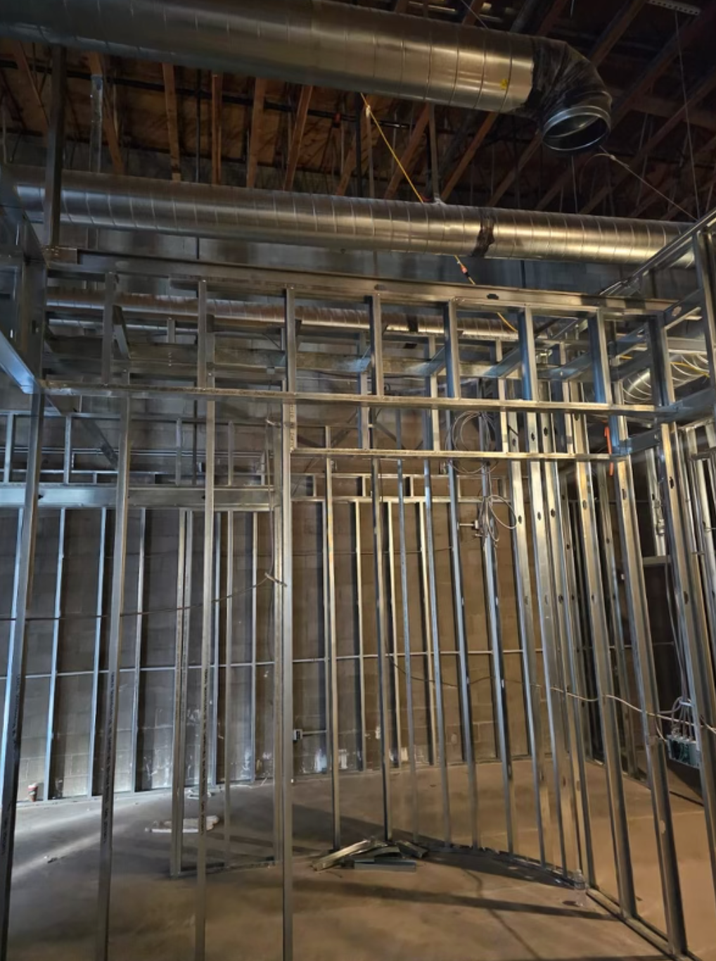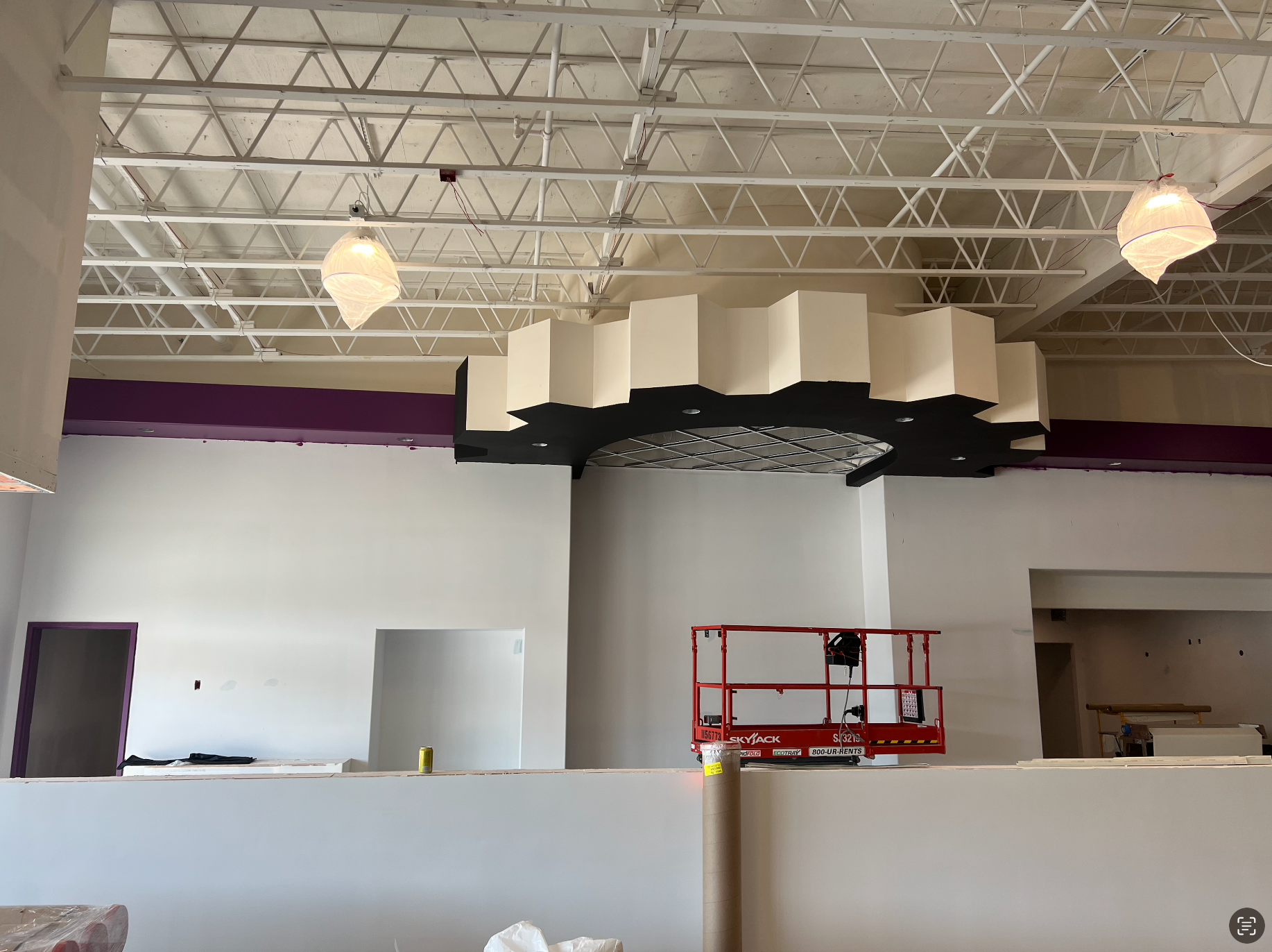 Drywall installed and finished, acoustic ceilings and paint
