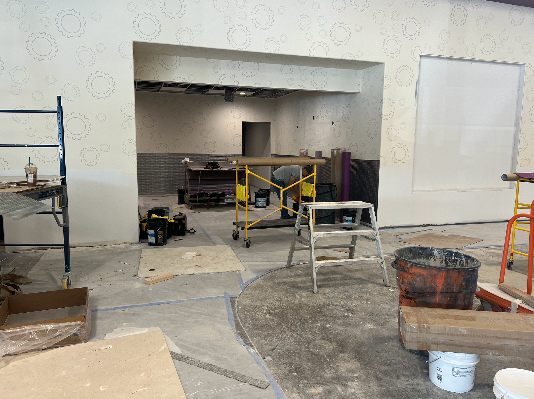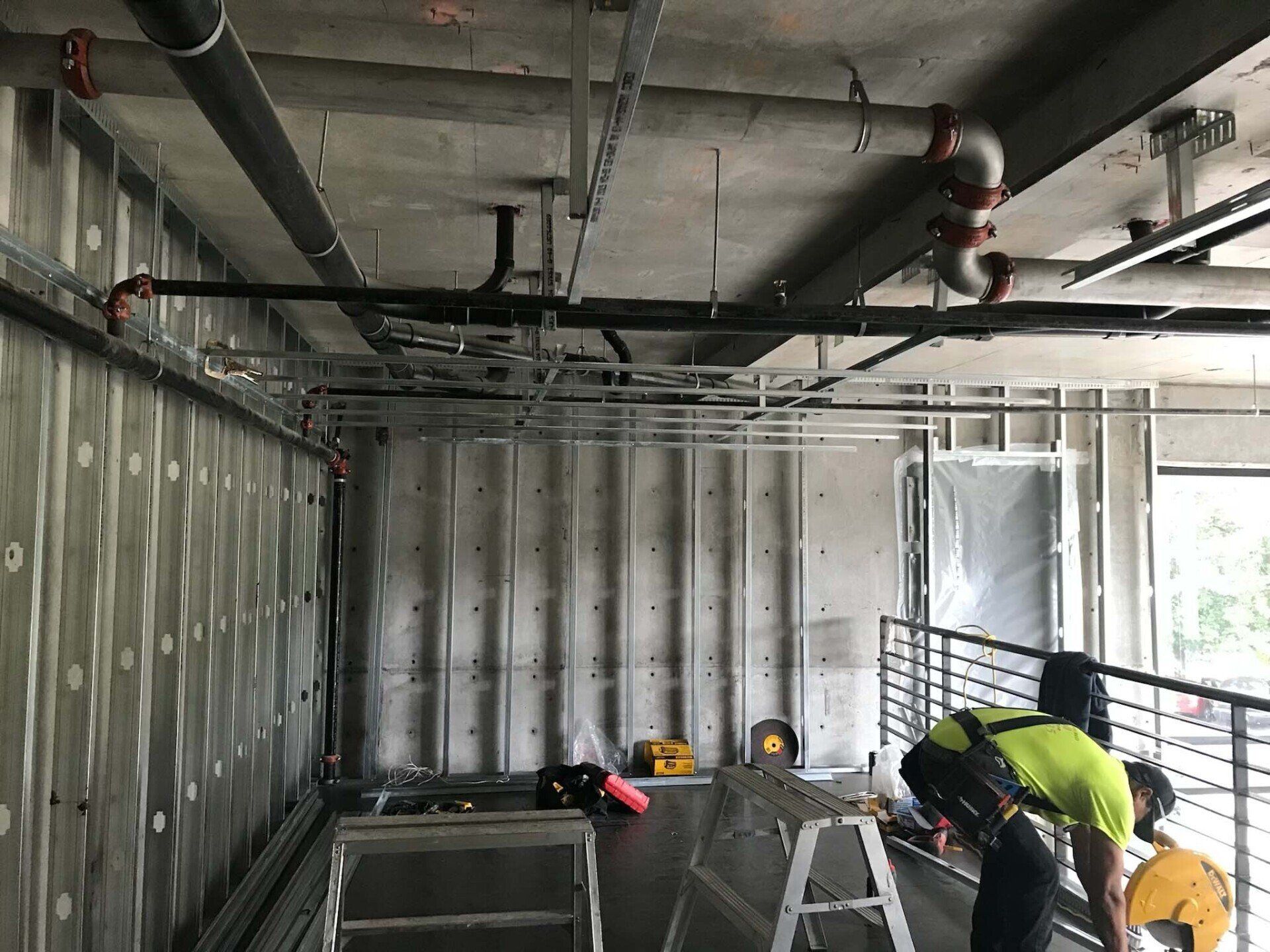 Acoustic ceiling and merlite installation in progess