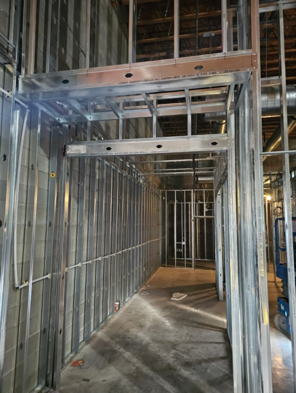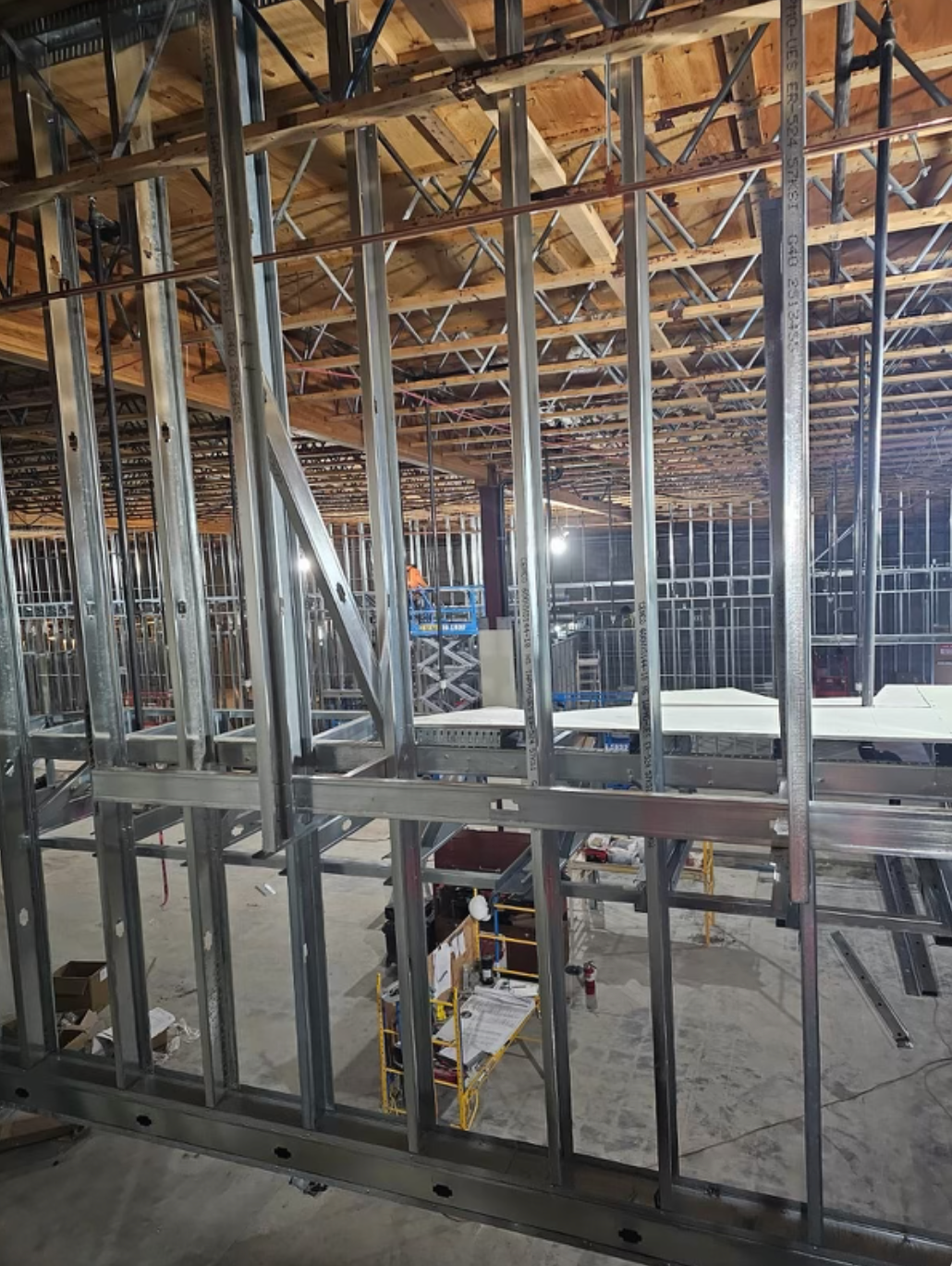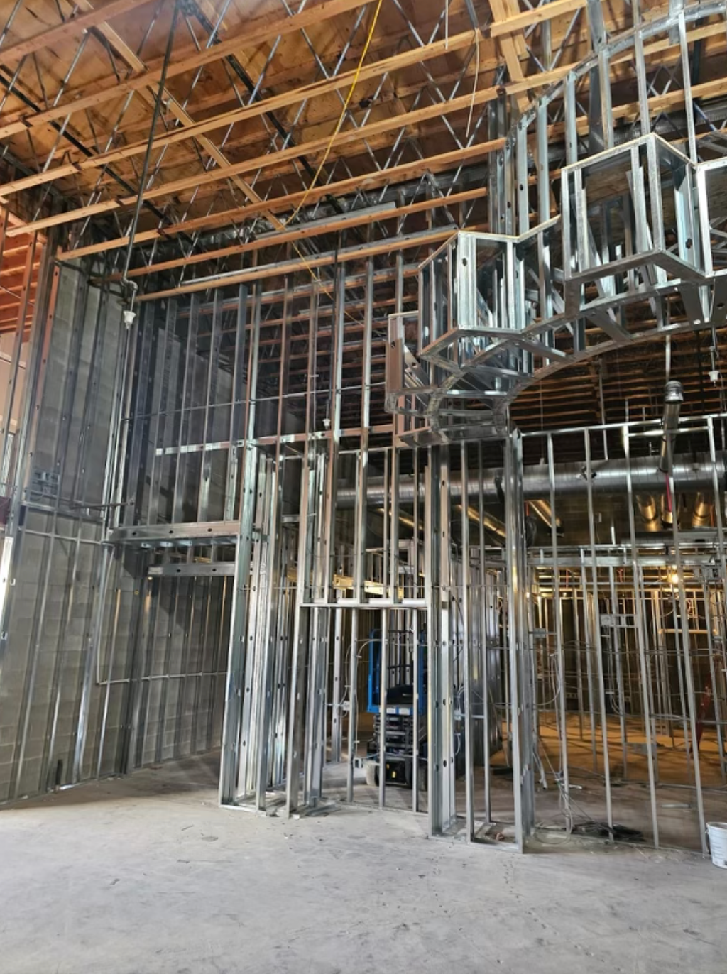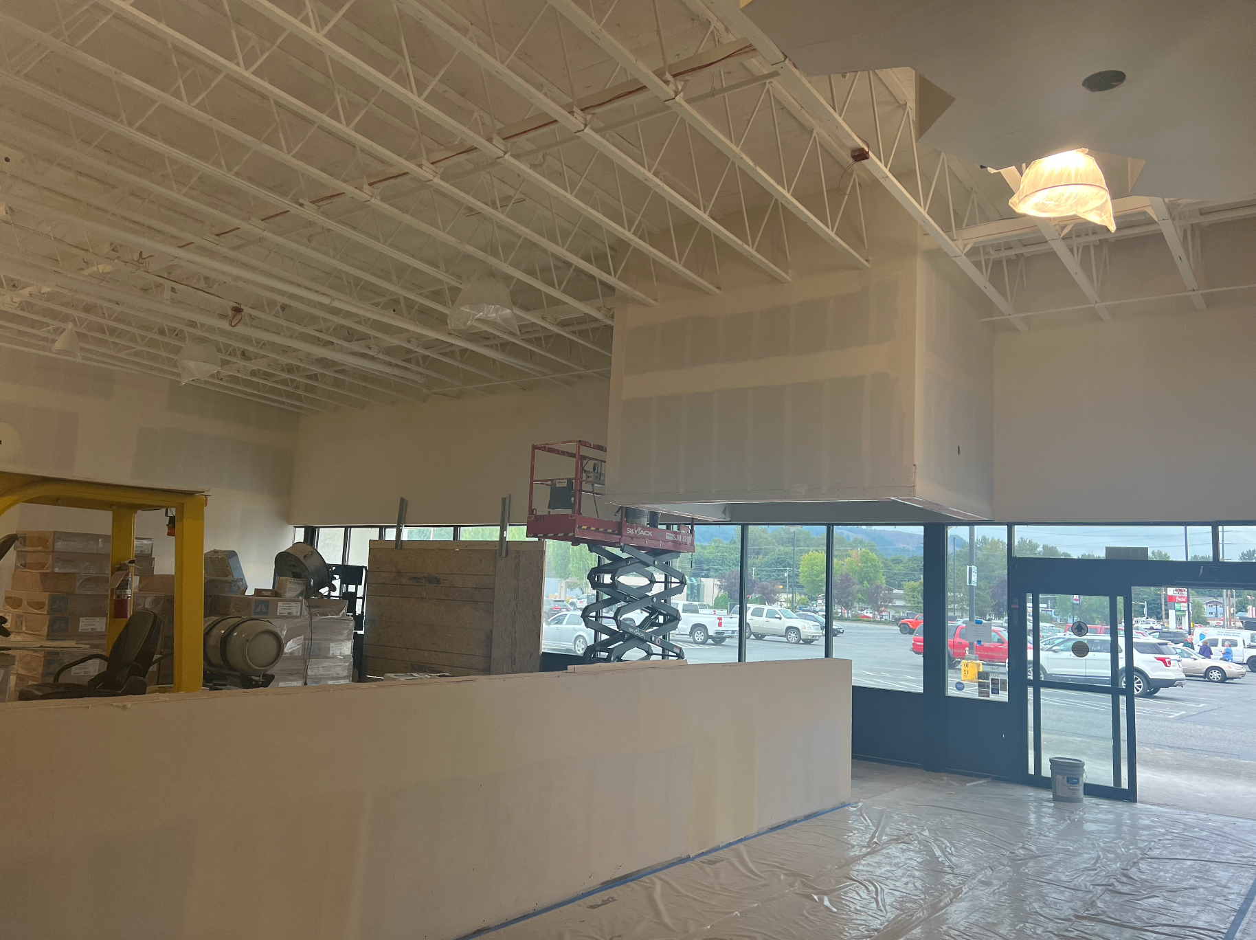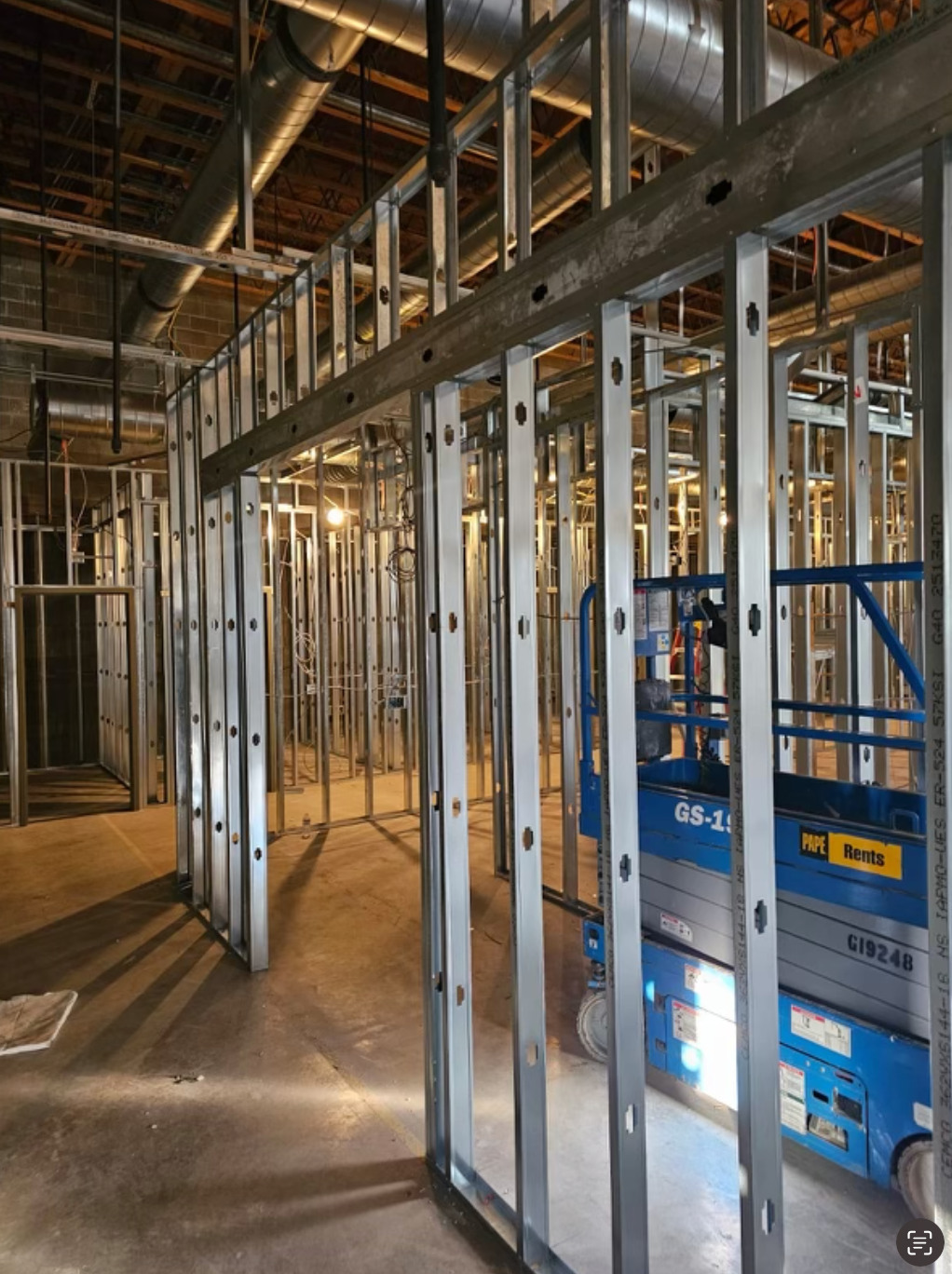 Drywall installed and finished, acoustic ceilings and paint