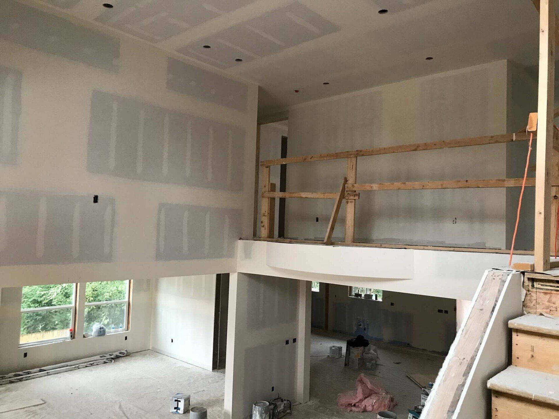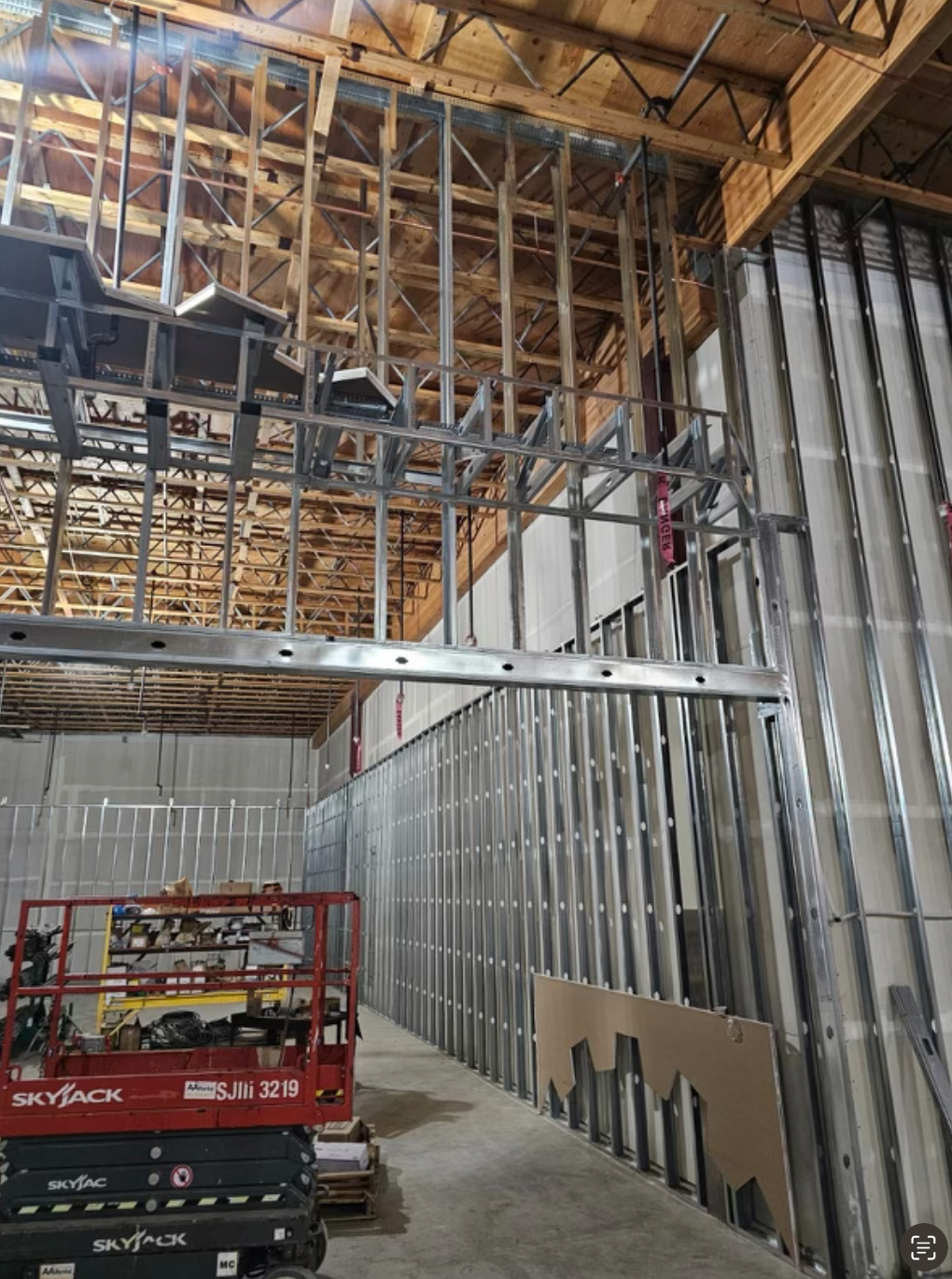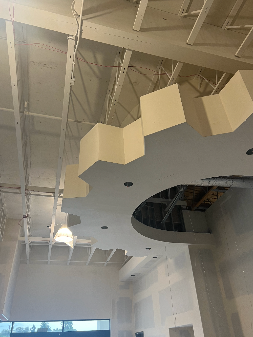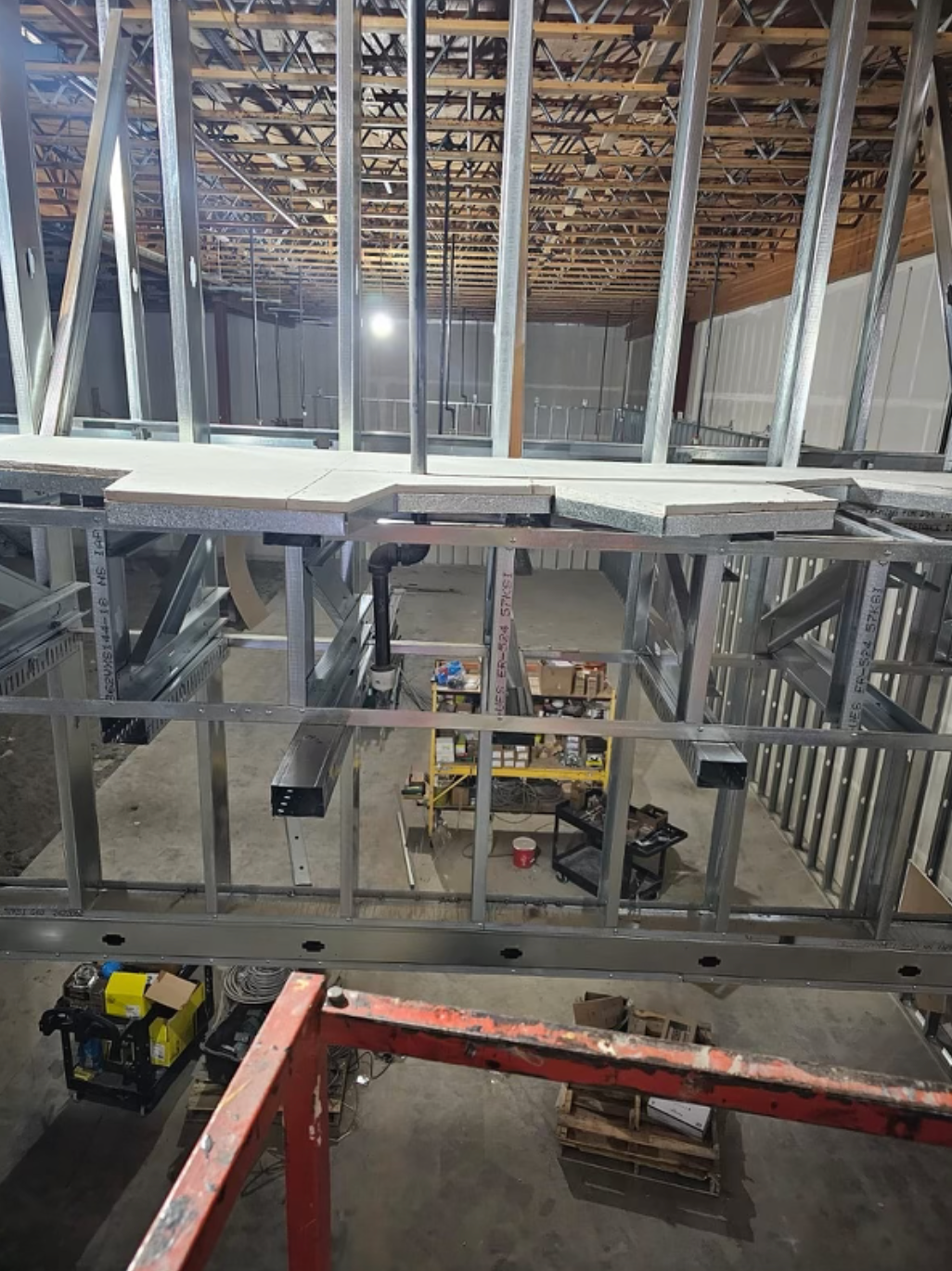 Drywall installed and finished, acoustic ceilings and paint