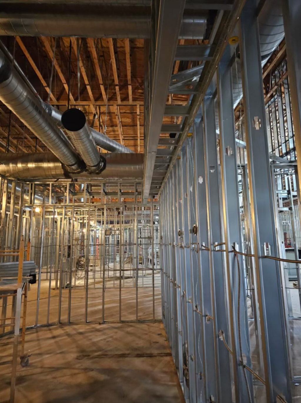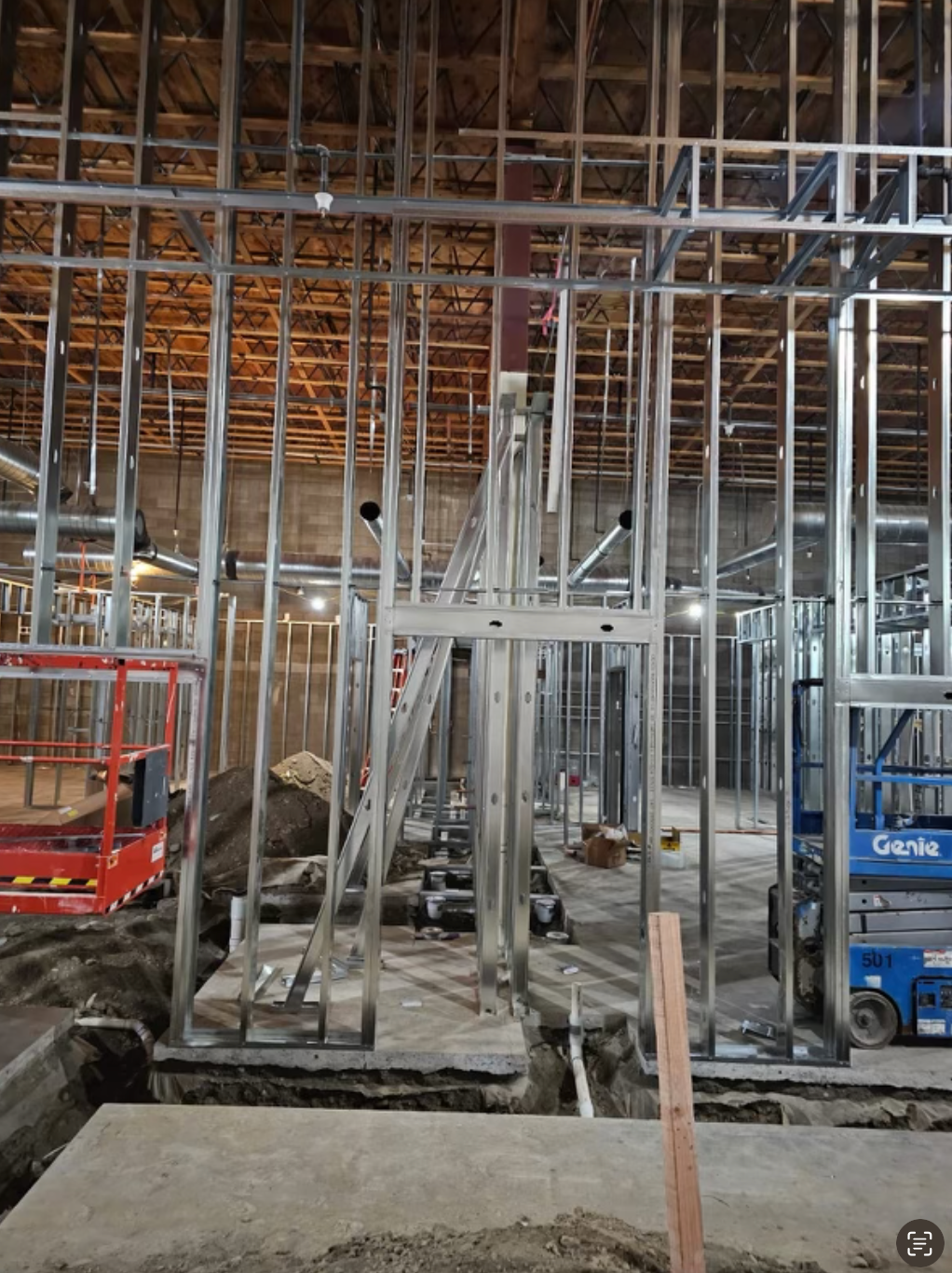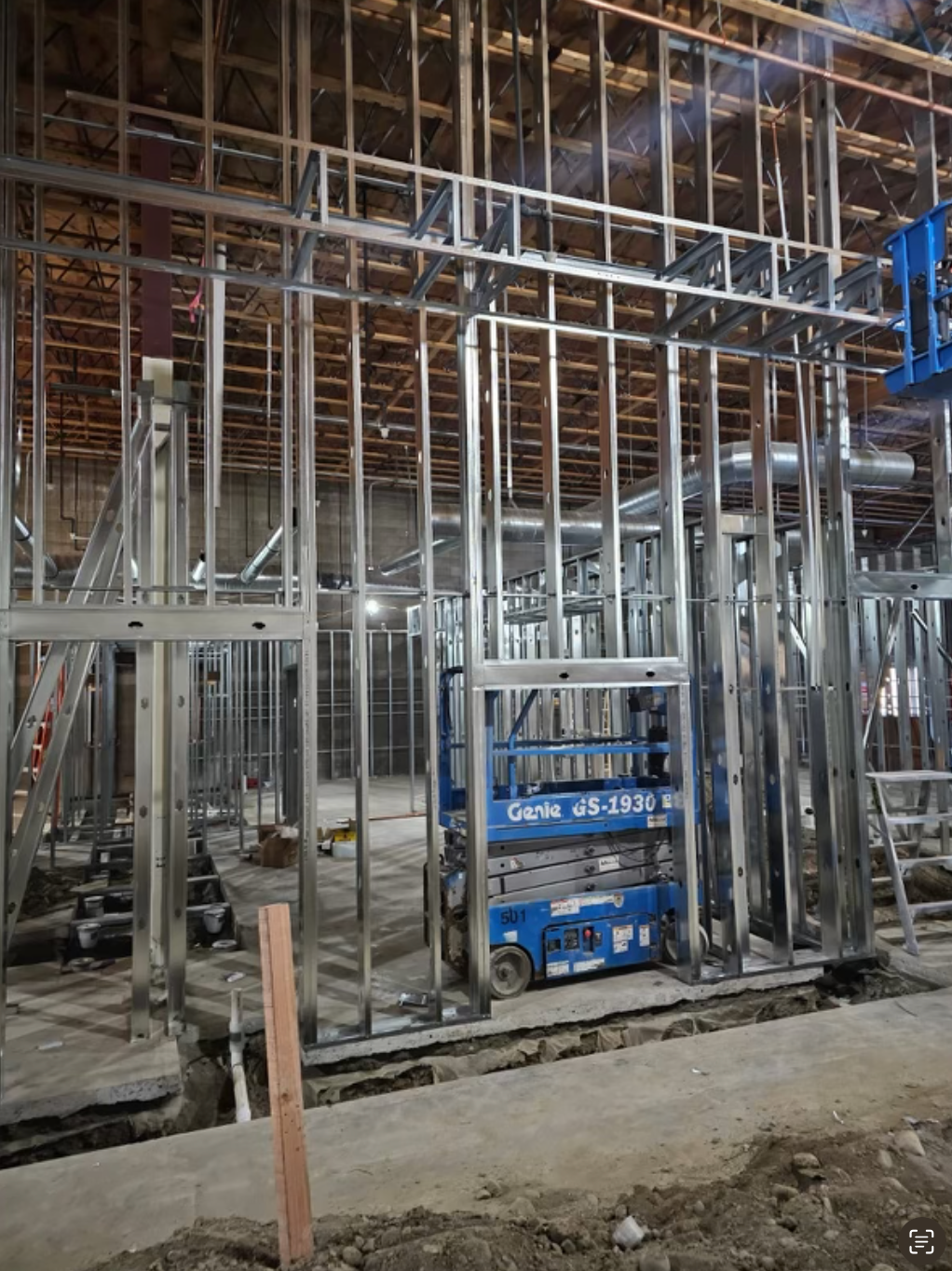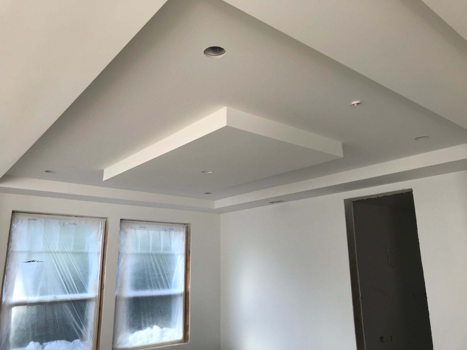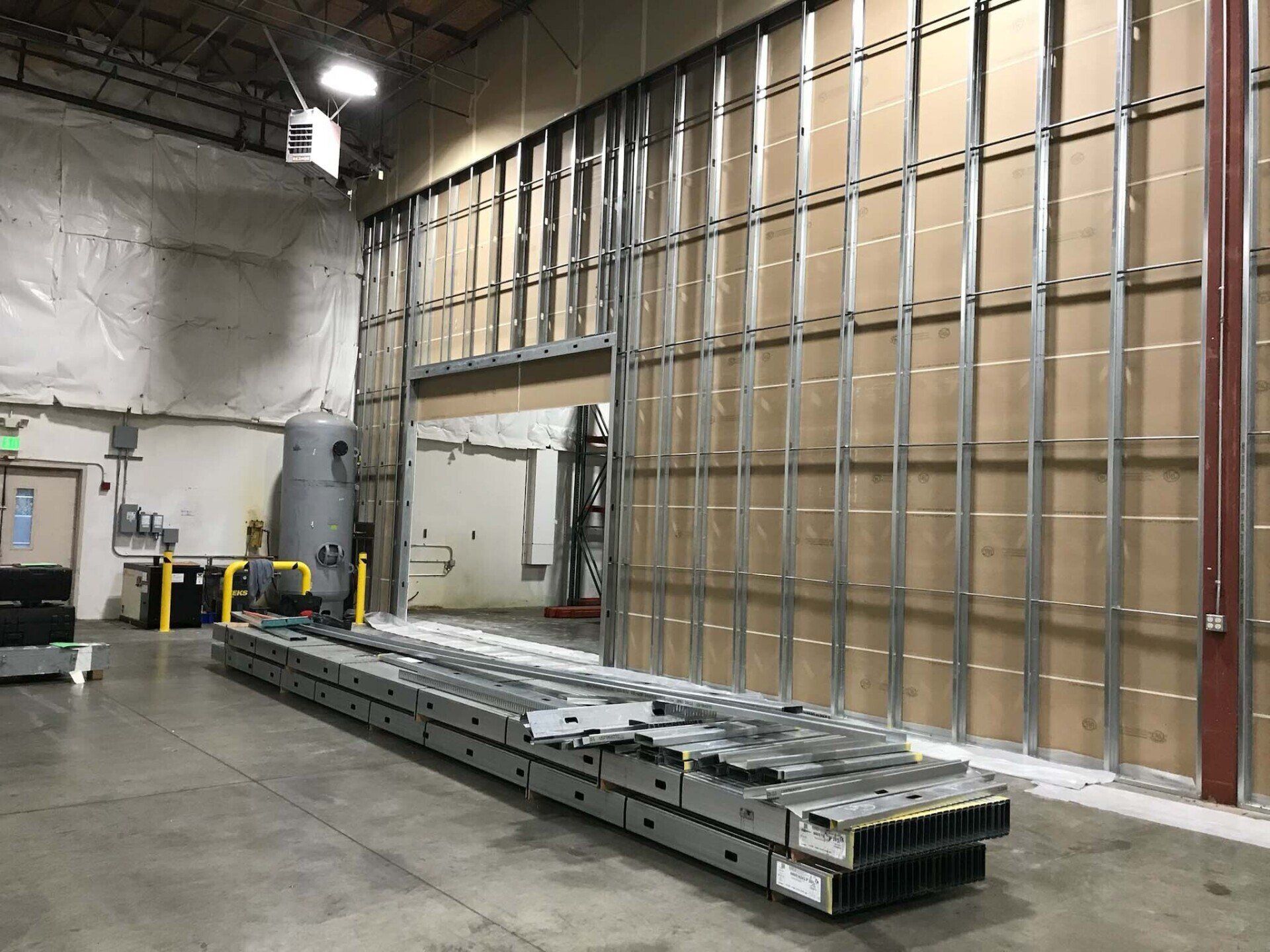 Drywall installed and finished, acoustic ceilings and paint