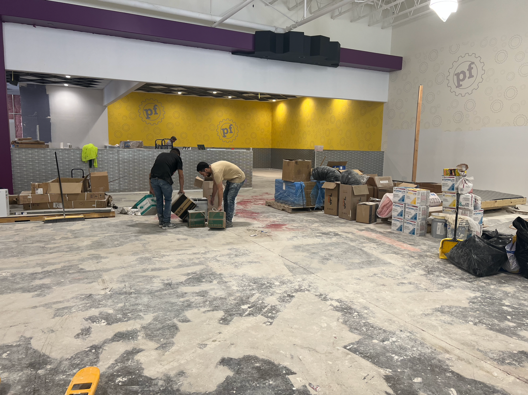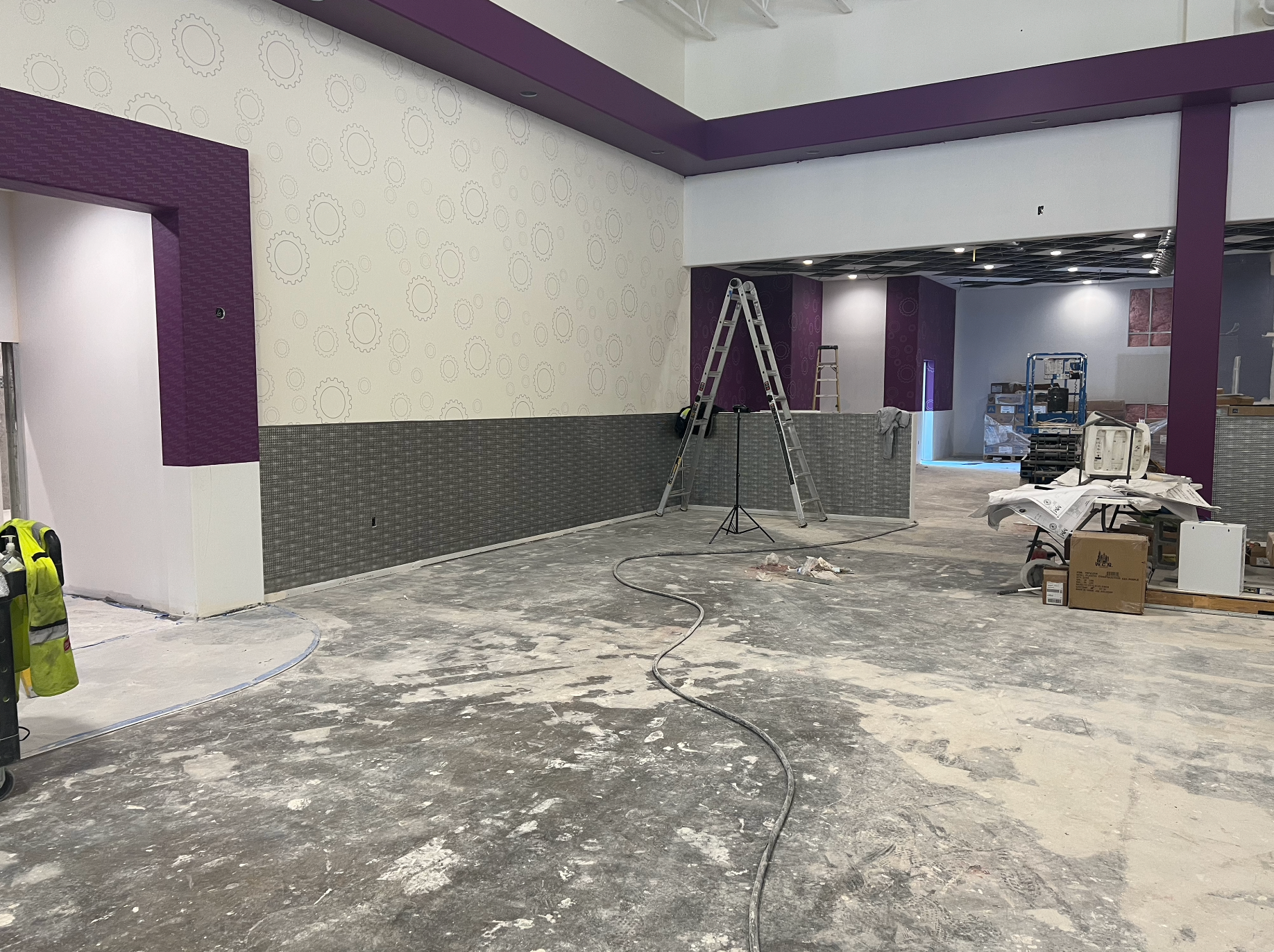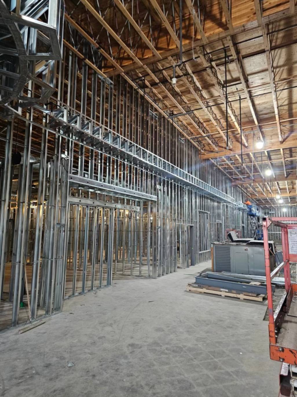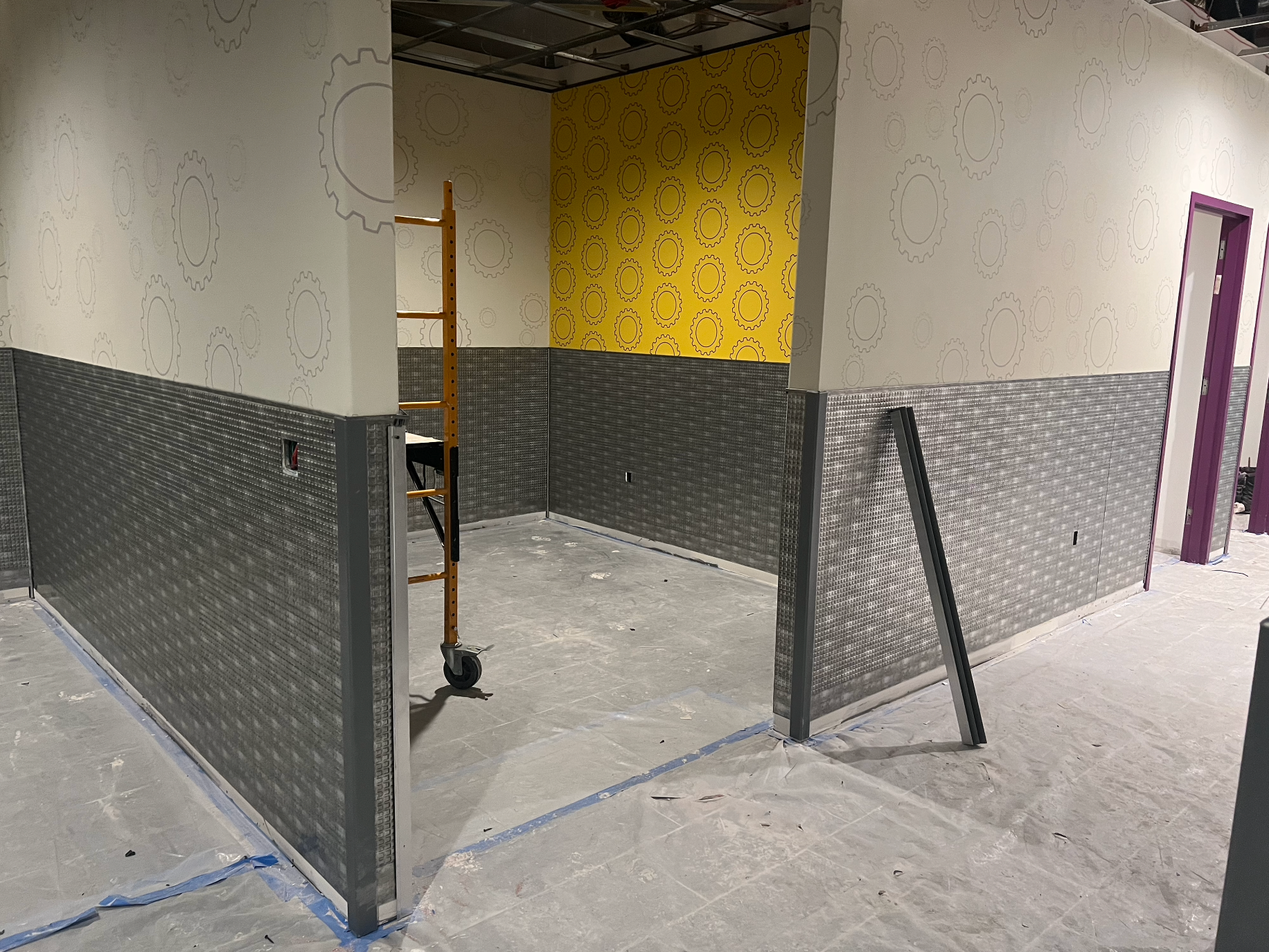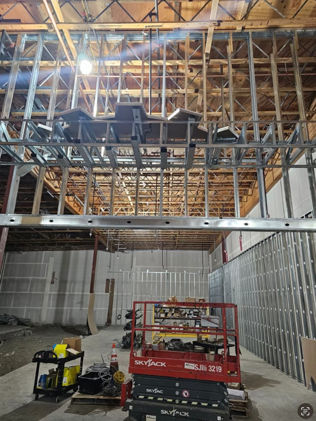 Acoustic ceiling and merlite installation in progess